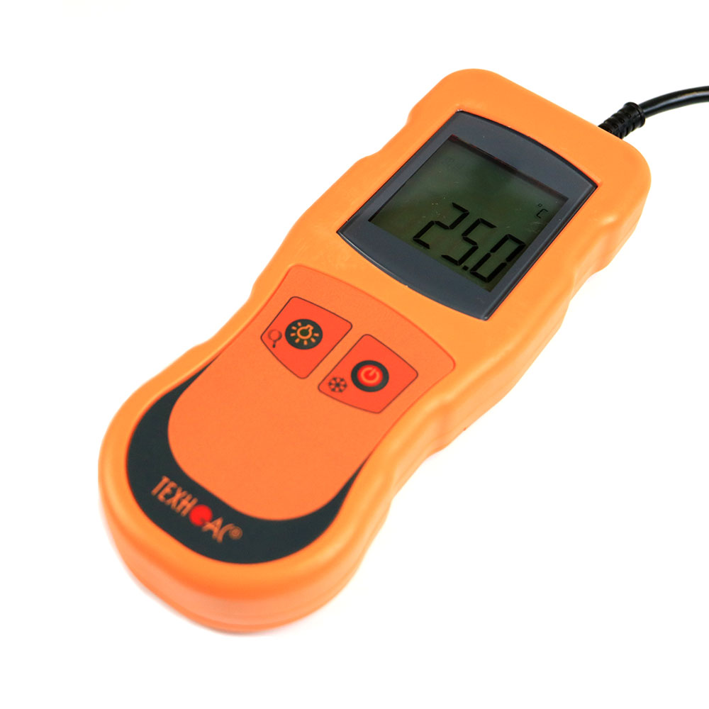 Чувствительный элемент термометра ТЕХНО-АС ТК-5.01МС представлен термоэлектрическим преобразователем ТП с НСХ по ГОСТ Р 8.585. Сигнал с выхода зонда преобразуется в электронном блоке и выводится на жидкокристаллический дисплей с встроенной подсветкой.