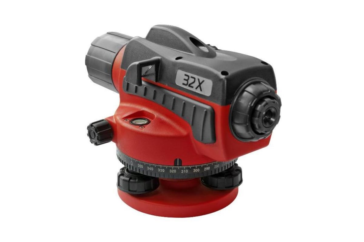Оптика нивелира имеет 32-кратное приближение. Установлена просветленная оптическая система, которая облегчает выполнение работ в условиях недостаточной освещенности. Она дает в окуляре прямое изображение нивелировочной рейки, что облегчает выполнение замеров.